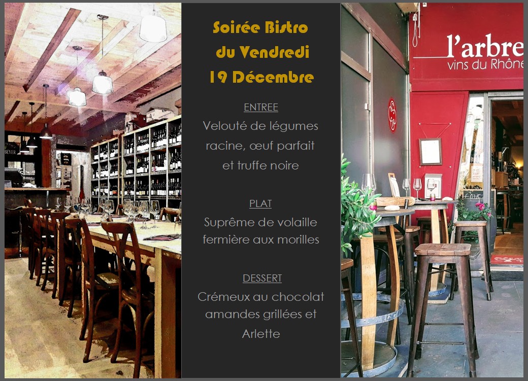 ACCUEIL Chèr(e)s winelovers Comme un petit air de Noël ce vendredi !!en plus de notre carte habituelle bien sur 😉 Renseignements et réservation au 0954 33 64 44 ou contact@larbreavins.com Bonne semaine à toutes et à tous !! Élisabeth, Laurent & Mathieu Partager : Partager sur X(ouvre dans une nouvelle fenêtre) X Partager sur Facebook(ouvre dans une nouvelle fenêtre) Facebook